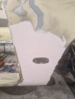 Jeg kikket litt mer på panseret, og etter at jeg hadde sveiset inn en bit, la jeg på litt sparkel: