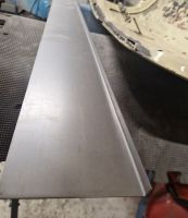 restene av falsen som lå inni der var rusten, men det ser ut som det som er igjen ser ok ut. Planen er å lage den nederste biten av innerstrukturen, sveise den fast i det som er igjen av innerstrukturen, og bøye falsen rundt igjen. (etter å ha behandlet med noe som gjør at det forhåpentligvis holder i 60 nye år)