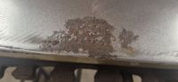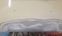 Jeg tenkte jeg skulle se litt på denne motorluka også, og problemet her er disse sprekkene bak/under skiltet: