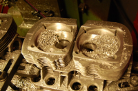 Så var det toppene sin tur. For å få 40cc i kammeret måtte det 5,8mm høvling til. Noe som førte til at hele den øverste ribben måtte fjernes for å få på sylinder