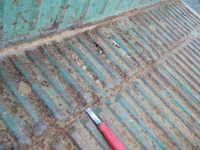 Mildt sagt er da rust på alle rammedeler(=alle utriggarar, indre + ytre kanal, tverrbjelkane, og dei I-bjelkane under golvet..