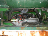 Litt av da livsfarlega bensinspagettisystemet under bilen...... Her er ei eletrisk bensinpumpa, i tilleg finst endå ei eletrisk bensinpumpa + sjølvsagt den som står på motoren + ca 4 meter med slangar og røyrer av ymse merke dimensjon og produksjonsdato.. Det finst tilogmed ein ORGINAL bensinslange intakt og det er den morkne stoffkledde slangen som visar på bildet, mellom tank og filter 1 av ørten.  Eg skjønnar ikkje kva dei som har lagt opp alle desse slangane under her har tenkt på/med Hæ