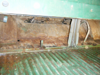 Har fått vekk all den forbanna glavaen baki.. Det er sanneleg litt av ei rustbomba! All glavaen er fuktig, og plandelen som er fremst mot bilen er jo ikkje tett so da har komt ganske mykje vatn inn derifrå og rett ned i glavaen.. Alt baki golvet og rundt der er fuktigt.... og rusta Øyerulling Tvilende Eg tenkte eg skulle sleppa undå å skifta golva bak men det er ikkje ut som det er håp for det lenger! Det er rustflekker, sprengrust og hol altfor mange plassar til å lappa da saman..