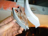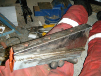 Den utvendige lappen var i brukbar stand så den vart slipt ned på begge sider og innsida malt so vart den sveist på igjen. så so langt kom eg før da va tomt fø tråd...