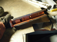 I restaureringshåndboka mi står det at denne kan modifiseres/skjøtes og brukes, eller at man kan kjøpe en annen reprovariant der jekkfeste og utrigger kommer hver for seg, og må sveises sammen. Jeg syntes sistnevnte var en greiere løsning, og gikk for den. Unneberg hadde begge varianter da jeg kjøpte.
