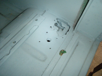 Mens eg dreiv på der i innerskjermen såg eg rusta ved setebeltefeste..