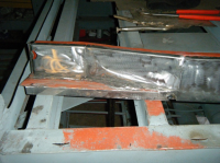 Kappa av botnen og slipte nedi inni boksen so langt det gjekk for å få vekk laus rust. etterpå vart dan smørd inn med ovatrol som ska trenga inn i porene bedre