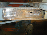 ny plata på plass på sido. ps: den er ikkje so rusta som blitzen skal ha da te. skal uansett slipast..