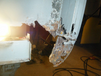 med eine sideplato på plass var greiene solid nok til at eg kunne plukka av baksido + andre side delen. so er da berre å få laga detta nytt og slengt på plass att! må og renska vekk restar frå kanalfalsen i botn der.