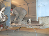 Jobbes iherdig om dagen. Ikke så mye synlig fremgang, men det har blitt sandblåst og byttet ut en del stål.