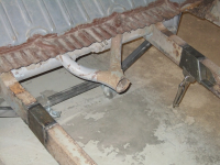 Bussen ble kontrollert at stod støtt og i vater. Så, etter mye lirking, kapping, banking og jekking ble gulvet løftet og avslørte bla luftige bjelker på begge sider. Disse ble forsterket før jeg fortsatte.