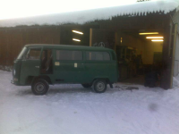 I mai i år var jeg å hentet min første bil, i Bodø. Jeg var med det samme frelst over hvilken sjarm disse bilene har. Selvfølgelig visste jeg at dette ville føre med seg en del arbeid, men det gledet jeg meg til. Tiden har gått og jeg har fått gjort noen større og mindre ting. Var på noen fine turer i sommer med "olga" og nå i høst har hun intatt garasjen for litt oppmerksomhet under skjørtekanten. Hun er i meget god stand i utgangspunktet men har litt rust på de vanlige stedene; kanaler, batteribunn osv. Jeg må få si at i tillegg til at dette er min første bil (er 20 år) var dette også mine første erfaringer med sveising og det som følger med. Jeg har siviltjeneste på en skole i Telemark og har vært så heldig å få benytte verktøyet som skolens garasje har tilgjengelig. Det er kanskje litt sent å sette i gang en prosjekttråd nå som jeg allerede har gjort en del, men mye gjenstår. Tenkte det hadde vært gøy å høre hva folk tenker og få litt inspirasjon og tips. Her er noen bilder av bilen før den inntok garasjen