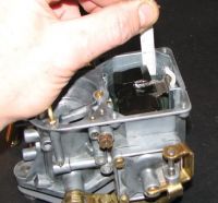 5. Med en tape-bit eller liknende dras chokespjeldet til åpen posisisjon (viktig, ellers blir det ikke full vandring på aksepumpen).