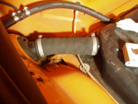 Eg festa slangen i bremserøret fordi eg tenkte att det stod i ro, og slangen kjem ikkje i kontakt med nokon styrestag!? Men eg kan jo sikkert korte den inn,, men det er jo alltid ein overhengande fare når eg skal til med bensin.. Rekker tunge