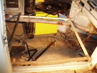 VIKTIG: Karosseriet MÅ avstivast med ei ramma innvendig før du fjerner noko som helst kanal. Dette er fordi att døropningane ikkje skal flytta seg under surgery.. Ja for varmekanalen er jo eit av dei viktigaste berande elementa i karosseriet. NB: denne ramma er ikkje god nok, dette var eit av punkta som var endra undervegs, kjem meir info om dette seinare.