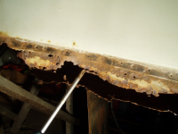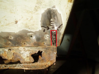P1015493.jpg (113.57 KB. 733x550 - vist 1631 ganger.) Dårleg bilete, men her ser me kor rusta ting er under her.. Må lagast ny plata i endane her.