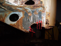 P1015571.jpg (114.52 KB. 733x550 - vist 1584 ganger.) So begynner eg lenger bak att. Her har eg pussa rein langs kantar, og Her ser me sveisen samt tysjstrek som visar kor eg skal kutta, med vinkelslipar og dremel.
