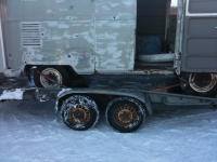 Konklusjonen er vel for tiden, ta av dekka, sveis tromlene fast i hengeren, dra på håndbrekket + 1 gear. Ta vertikale stropper, trekk karoseriet ned mot hengeren til fjærene er strammet helt ned til stoppen. En fordel ved avlasting er at bilen senere kan skytes ut av hengeren ved hjelp av stroppene. Er det noen du ikke liker osv.