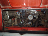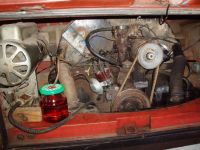 Litt framgang ikveld.. Fekk justert stift, pussa kontaktar rundtomkring i motoren, justert ventilane, fyllt på olja, justert choke og fiksa ledningar på gassar, montert coil og fiksa nokon fleire ledningar, laga te bensinrøyr og slange for midlertidig bruk(rett frå flaska, ikkje via tanken) Eg fekk og litt straum i gamle kretsar..  Monterte nylada 6V batteri, testa diverse knappar. Det var vist ikkje mykje lys på bilen,, ikkje rart dei bygger om til 12 v Men eg hadde tenkt å sviva igang motoren, men startaren ville ikkje samarbeida.. den trakk massse straum og ikkje tegn til liv. så eg har tenkt å skifta startaren med ein an. Vist ikkje det hjelper so er det eit enormt spenningsfall i ledningsnettet! So dermed er vidare arbeidsplan: -Skifta startar, forhåpentligvis går motoren rundt.. -Laga til ein midlertidig bensintank. -Få start på bilen! -Smøra opp clutchpedalen(heng att nedi golvet) -Tut å kjøyr!
