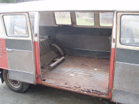P1018150.jpg (165.97 KB. 733x550 - vist 324 ganger.) Westfalia benker, deksel framme, utkapp til rusta vindu, tehengarfeste, bedre støtfangar bak, nos varmerøyr og nos doglegs..ja ogso førarstolen til venstre