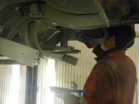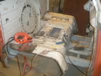 planen vidare er å skrapa vekk da som er av grease under og demontera meir. bak og. so skal bilen sandblåsast under og so kan sveisinga begynna.