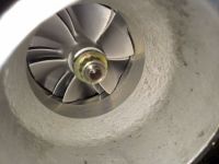 Lageret gåent i turbo, olje i eksoshus og slitasjemerker etter kompressorhjul i huset.