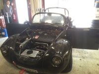 Ja, det har heldigvis skjedd litt de siste 5 ukene etter jeg oppdaterte her sist :-) Har vært en del saker å ordne opp i, orker ikke forklare alt nå. Vises noe mer på FB.. Alt som skulle til for å starte motoren er ordnet, og motoren har startet. Ingen lekkasjer, ingen ulyder. Oljetrykk stabilt på 6 bar. Men under innkjøring av kammen stoppet motoren etter ca 10minutter.  De 1600cc dysene jobber helt i nedre grense, og kombinert med ny dynamo som ikke ville lade, fikk de for lite strøm (Ga seg på ca 10v) og bilen stoppet. Mens bilen sto i ro hørte jeg en metallisk lyd, men regnet med det var eksosen som knitret, så gadd ikke sjekke. Etter å ha koblet på div. batteri ville den ikke starte. Det ble da oppdaget at triggerhjulet hadde løsnet og spant på innsiden av reimhjulet. Dette var krympet på, og er helt sikkert godt nok. Men da begge eksosrørene mine passerer kloss inntil dette, utvidet det seg nok til at det ramlet ut. Så nå har jeg krympet det på plass igjen og sikret det med 6stk M3x15 forsenkte skruer. Skal også lage en form for ekstra varmeskjold. I dag må jeg fikse lading, sjekke ventilklaringer og olje, gjenge opp til ny tempsensor i spacer til toppdeksel og kjøre inn kammen på nytt. Har mange andre ting jeg må ordne før bremsing på søndag.