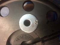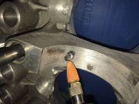 Så når jeg ser på delene i motoren nå, har pinnen i blokka ved svinghjulslageret flyttet seg ca 4mm, og hullet til pinnen i lageret er revet opp ca 4mm. Dette gjør at lageret har rotert 8mm og så godt som stengt oljetilførsel til rammelageret, samt til råde 1 og 3.