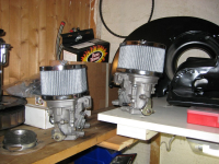 IMG_0704.jpg (67.87 KB. 640x480 - vist 332 ganger.) idag fikk måtte jeg fikse noen gjenger i toppen av forgasserene, de som holder velocity stacksene nede, og fikk da målt flottør høyde. målte litt blandet men la de på 9 og 32mm som jeg mener å ha lest ett sted. Skyt meg i foten hvis det er feil