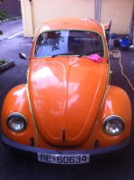 Lakken er dårlig mange steder, sprukket opp og flasset av, rustflekker med sår her og der og tydeligvis omlakkert minst én skjerm og noe bak. Så det er begrenset hvor bra det blir med polering. Men på de store flater så ble det meget shiny  Glad