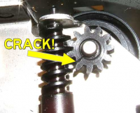 Besvarer mitt eget spørsmål med at ja, dette er tannhjulet du henviste til. Det var sprukket og falt av. Hadde ikke araldit så forsøkte superlim men det holdt ikke. Men, tredde det på pinnen igjen og jaggu holdt det ikke Glad Enn så lenge.. for nok bestille et, dersom det er å oppdrive.