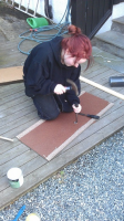 Nytt teppesett monteres nå. Fikk bra hjelp av datteren under teppelegging i dag!
