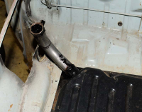 Ja Liv, ikke sant  Var hyggelig at dere stakk innom. De andre som var der er der så ofte de veitu  Nå har jeg litt tid til å skrive her igjen. Jeg har kommet i gang med rep av rust og andre elendige løsninger. Dette er faktisk første gang jeg har gått løs på et bilkarosseri med sveiseapparat og hammer. Jeg er spent på utfallet Jeg har fått laget innvendig påfylling på bensintanken med hjelp av et 90° eksosbend fra biltema og den gamle tuten. Det jeg gjorde var å kappe av tuten på det gamle røret og sveise det sammen med eksosrøret. Så sveiset vi eksosrøret fast i tanken. Shmuuud Blir nok en eller annen løsning for å skjule deler av røret.
