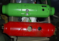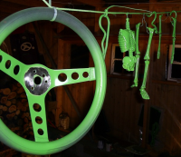 Rørene til akslingene er lakkert grønn, så da mangler det bare å pusse ned og lakkere bærearmene framme i samme farge  Gliser