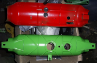 Nå er tromlene bak pusset ned og behandlet med rusteter, og rørene til akslingene er pusset og nesten klargjort til lakkering.