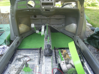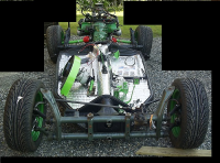 Jah, etter masse mekking og div banning + en dæsj kaffepause m røyk, ble tilslutt understellet og karosseriet festet sammen.