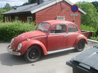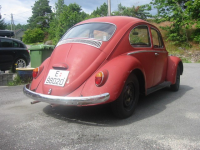 Nå er den solgt til et nybakt medlem av VW-gjengen  Glad For pengene hun sparte på å kjøpe den, skal hun lakkere den opp igjen. Dog ikke i originalfarge  Tvilende