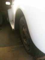 Lurer på om de nye skjermene jeg satte på i dag er bredda? De måler 13" fra karosseriet og ut rett over dekket. Se bilder, tok ett bilde med 4,5" originalfelger og ett med 9" ATS. Hvor brei er bobla bak originalt? Jeg har en 69'mod.