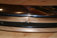 Pga feilkjøp (skulle hatt frontfanger) selges en bakfanger til T1 -68 -> -74. Ble fortalt av selger at dette er en fanger med god chrom-kvalitet, så jeg velger å tro det. Det er preget inn 2VW4 på undersiden og jeg tror den er produsert i tyskland (ifølge lappen som var i posen). Veldig pen, men det er en liten bulk på høyre side som sikkert kan slåes ut noe med en trekloss. Også en liten bue midt på fangeren som er vanskelig å forklare (se bilder).