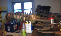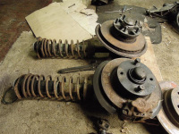 Bak: 924t armene er i bedre stand enn mine gamle så det blir nok disse. Ellers er planen å bruke rubbel og bit fra Porscha. Stabstag, torsjonsfører om ikke disse viser seg å være svakere, bærearmer, fjærplater, hubber, bremser, ja alt. Kommer til å maskinere ned fjærplate dekselet og bruke det også hadde jeg tenkt
