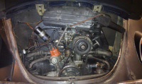 I det jeg skulle montere på eksosanlegget oppdaget jeg at det var på høy tid å bytte det ut. Et nytt ble kjøpt inn og montert. Mens motor var ute tappet jeg også av oljen på girkassa (som ikke er blitt byttet mens jeg har hatt den (6 år), og fylte på ny fin olje. Det er ganske mye enklere å gjøre sånne ting når motor er ute. Byttet oljesil og pakning på motor og fylte på olje på den og etter montering på bil. Deretter skrudde jeg ut starter, smurte litt fett på tappen som stakk ut fra girkassa, jekket opp motoren og dyttet den på plass. For å rugge den på plass den siste biten er det en fordel å vri litt på reimhjulet slik at taggene på motor matcher taggene på girkassa. Dette er også en jobb som det er greit å være to på. Det er ikke noe must, men helt klart mye enklere med to stk. Motor i bil, bensin, gasswire og strøm koblet til. VILLE IKKE STARTE =( Ville faktisk ikke tenne i det hele tatt