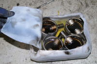 IMGP5576.jpg (159.36 KB. 1168x776 - vist 378 ganger.) Det ene stempelet hadde litt riper på siden men det var ikke mye. Det fungerer fortsatt fint å bruke. Dersom det er store riper/knukket "skjørtet" på stempelet oppleves det som kalles skjørtebank i motoren. Så da vet dere det. Dersom rådene er slarkete oppleves det som kalles rådebank. Disse to banketypene har da en viss sammenheng.
