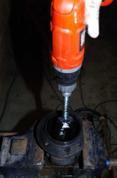 Da har det skjedd litt siden sist. Glemte jo så klart kameraet, og hadde mobil med lite batteri, den dagen det ble gjort mest. Men det ble likevel litt bilder. Honing ble utført med drill, biltema honingssett og motorolje. Jeg dyppet fingeren i olje og klinte det rundt inni cylinder, presset så sammen honingsverktøyet og puttet det inn i cylinderen. Startet opp drillen på ca halv fart og førte drillen opp og ned med jevne drag. Etter en stund tok jeg ut verktøyet og kjente med neglen om overgangene øverst og nederst (der stempelet hadde gått og der det ikke hadde gått) var jevne. De var ikke borte. Tørket bort olje og skit og påførte nytt oljelag og honet videre. Andre gangen var jeg fornøyd og det virket som om cylinderen hadde fått passe med spor i seg.