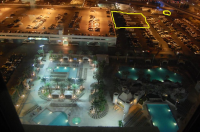 Utsikten fra vinduet på rommet i 25 etasje. Den påtegnede firkanten viser stedet hvor vw-parkingen var. Rammet inn med sperrebånd. Påtegnet runding viser hvor jeg ble tatt av sykkelpolitiet for urinering på offentlig plass.. bummer.