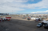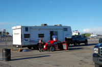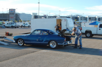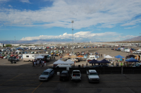 Selve treffområdet er en stor parkeringsplass for Las Vegas speedway. Man skjønner liksom at dragrace er stort i Usa. Mens rundt å rundt kjøring er enormt. De to stadioene var som David og Goliat. Og vi hørte konstant Indy cars blir kjørt rundt der inne.