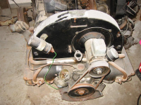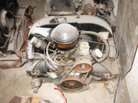 Denne mangler forgasser, fordelerlokk og eksos.