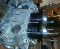 Og så satte jeg inn et sett med pinnebolter på den ene sylinderen, og de går faktisk akkurat klar av hullene i sylinderen alle 4: