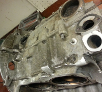 Sist jeg glassblåste en blokk så teipet jeg igjen alle hullene til bærelager og kamlager samt noen plugger.