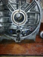 Jeg har kjøpt et sett med plugger til T1, og håpet det skulle passe, men det viser seg at det er et par hull på baksiden av motoren som har større plugger enn de største i T1-settet. Se bildet:
