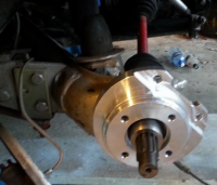 Neste var å begynne med å demontere trommelbremsene, for å forberede montasje av skivene, og her er første prøvemontering: